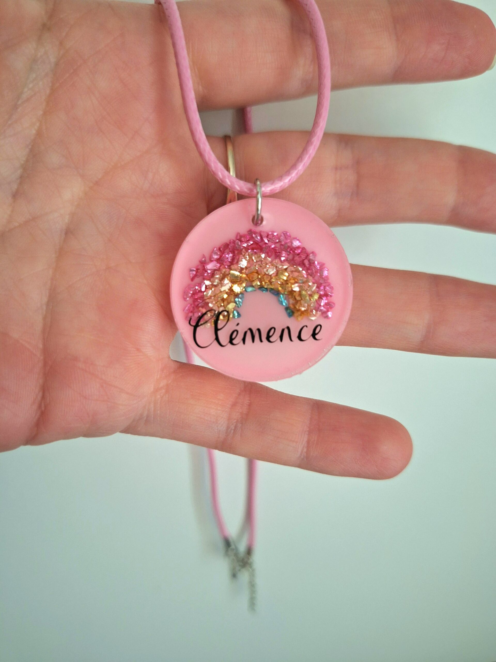 Collier en résine entièrement personnalisable, parfait pour les enfants.